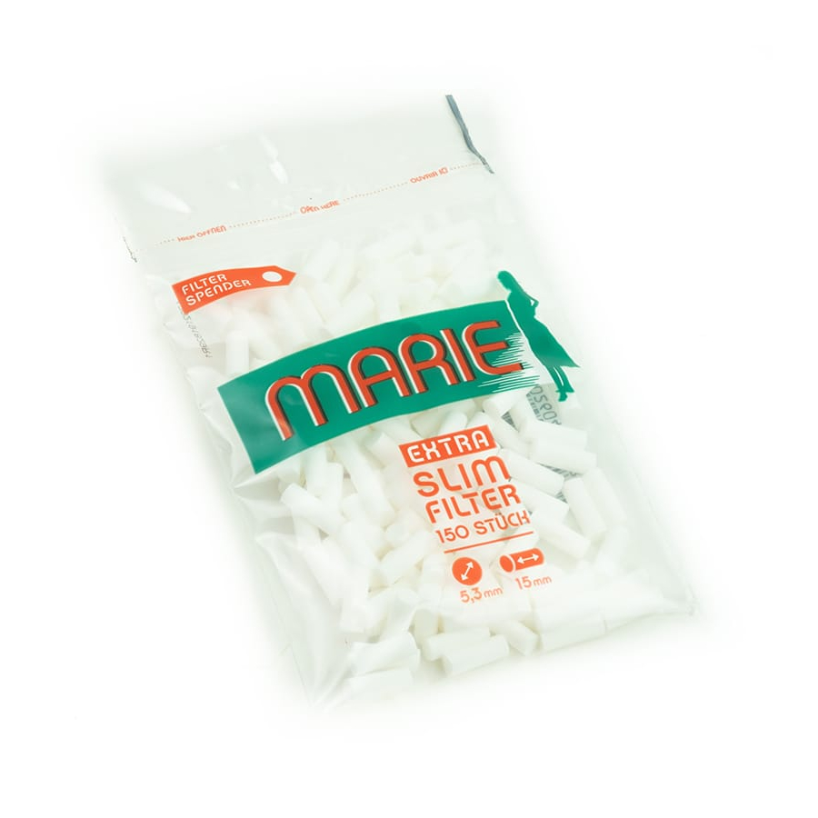 Die MARIE Extra Slim Filter haben gerade einmal 5,3 mm Durchmesser und sind für das Drehen von besonders schmalen Zigaretten geeignet.
